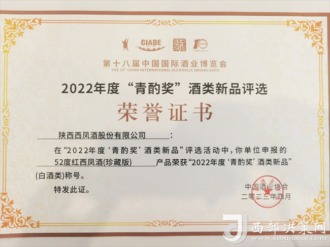 西部决策网讯(记者刘玉 韩宗宪 通讯员 张桓瑞)4月13日,中国酒业协会发布2022年度“青酌奖”酒类新品榜单,西凤酒战略产品五星红西凤荣膺2022年度青酌奖“酒类新品”称号。同期,西凤酒参赛作品“西凤酒·河”,荣获2023最美酒瓶设计大赛,概念设计组三等奖。