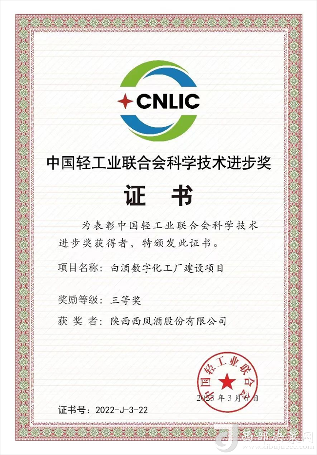 中国轻工联科学技术奖为中国轻工业的最高科技奖项,具有推荐国家科技奖励资格,旨在表彰在国家轻工业领域的科学研究、技术创新与开发,以及科研成果推广和实现高新技术产业化中有突出贡献的组织和个人,被誉为中国轻工业的“荣誉勋章”。西凤股份公司荣获此项殊荣,充分展现了中国轻工业联合会以及社会各界对西凤股份公司创新技术及创新能力的认可,也将激励西凤股份公司继续坚持科技创新与高质量发展深度融合,加快高端创新平台建设,进一步健全完善科技创新体系,以创新驱动助推中国白酒行业发展。