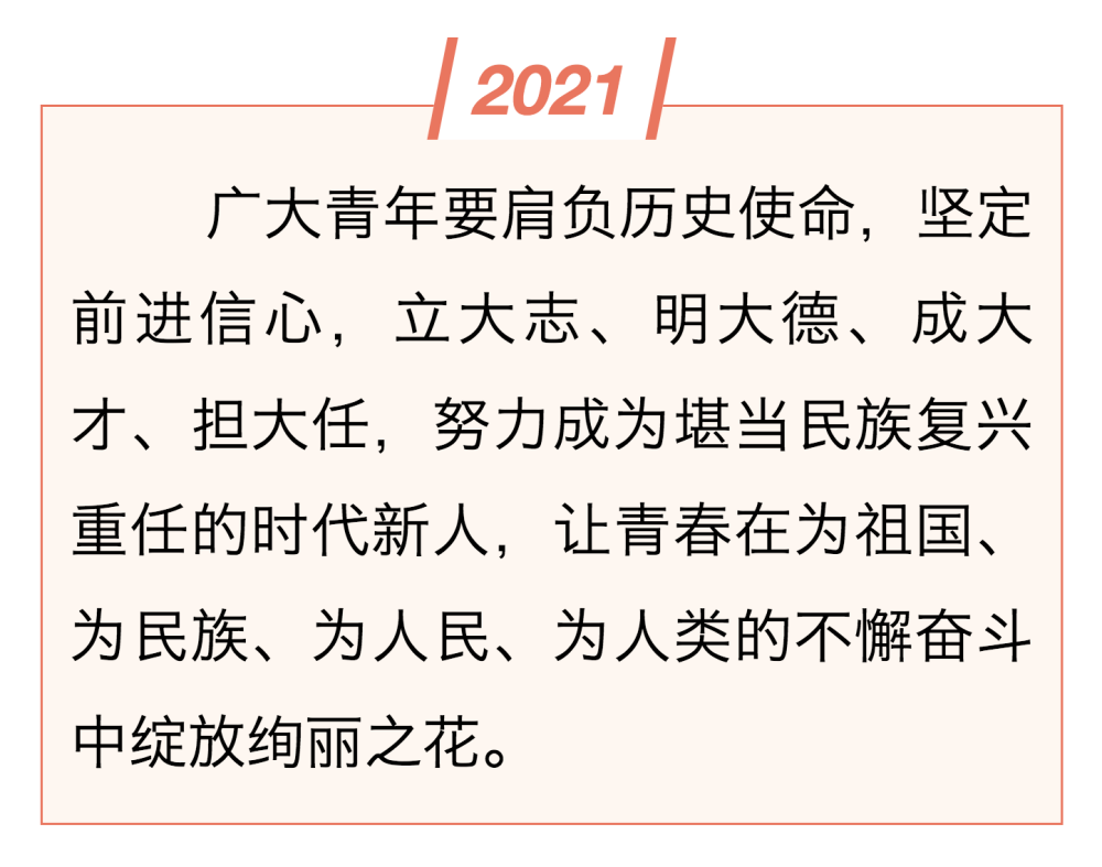 新时代新征程,中国青年将牢记总书记嘱托,激扬奋斗青春,担当时代重任,让青春年华在奋斗与奉献中焕发出绚丽光彩。