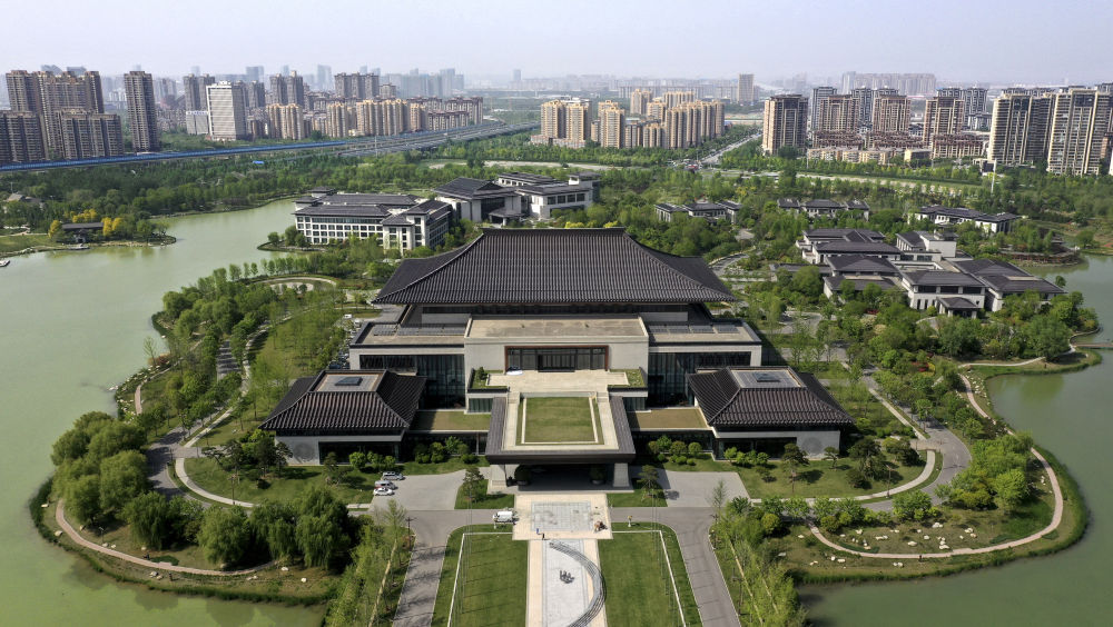 位于西安浐灞生态区的西安国际会议中心(4月16日摄,无人机照片)。新华社记者 刘潇 摄