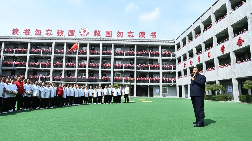 2021年9月14日,在陕西榆林市绥德实验中学考察时,习近平总书记走进教室、操场,观看同学们书法练习和体育锻炼,同大家亲切交流。他勉励同学们:“真正做全面发展的人才,一步一步地走下去,最终都能成为对社会有用的人、国之栋梁。”“德智体美劳全面发展,字字千金,都是经过多年总结摸索才得出来的。”