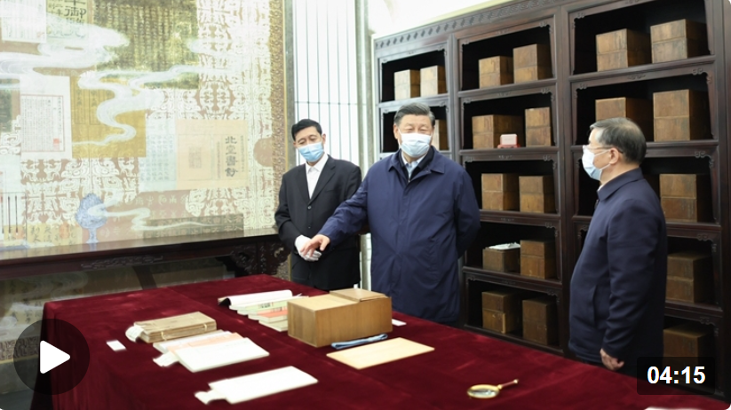 习近平总书记在考察时强调,建设中国国家版本馆是我非常关注、亲自批准的项目,初心宗旨是在我们这个历史阶段,把自古以来能收集到的典籍资料收集全、保护好,把世界上唯一没有中断的文明继续传承下去。