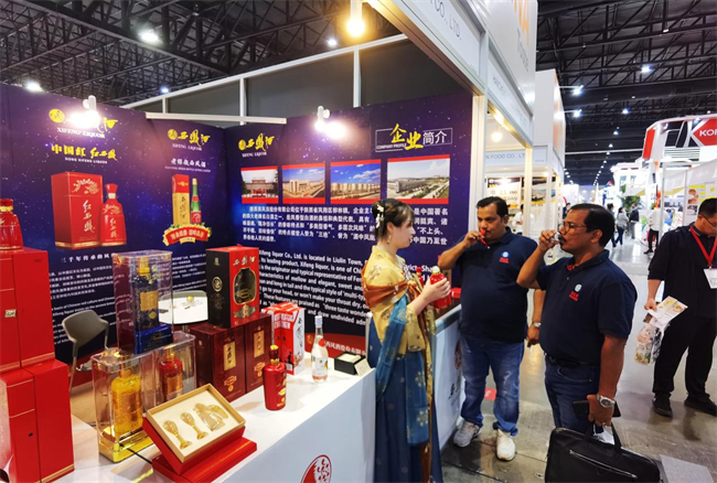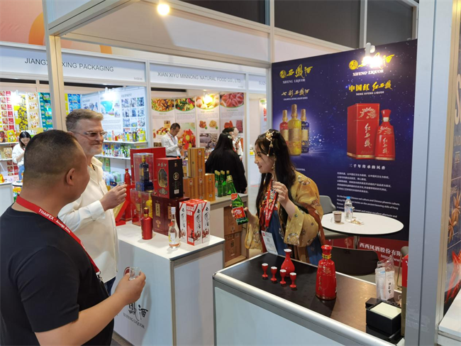 西凤酒展台前,各国商客络绎不绝,西凤品牌推广专员为各国来宾和客商介绍了西凤酒的酿造工艺及历史文化,并对红西凤高端价值进行了深度解读,带领大家领略三千年无断代传承的西凤酒文化,引起了广大客商的浓厚兴趣。在品鉴台前,大家频繁举起酒杯品尝不同的西凤产品,对西凤酒醇香典雅、诸味协调、甘润挺爽、尾净悠长的绝佳口感连连称赞。
