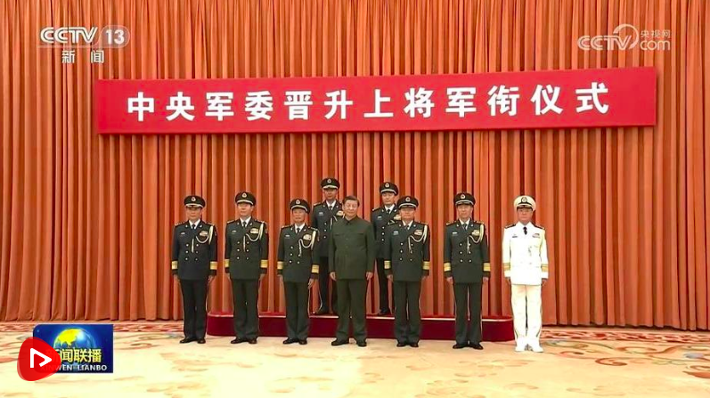 下午4时30分许,晋衔仪式在庄严的国歌声中开始。中央军委副主席张又侠宣读了中央军委主席习近平签署的晋升上将军衔命令。中央军委副主席何卫东主持晋衔仪式。