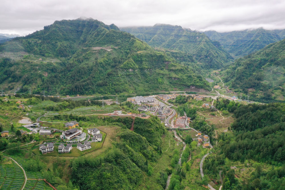 这是重庆市石柱县中益乡华溪村景观(2022年4月14日摄,无人机照片)。目前中益乡拥有中药材、特色蔬果等支柱产业。新华社记者 唐奕 摄