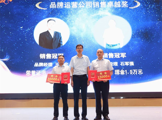 张周虎为品牌运营公司销售卓越奖获得者颁发荣誉证书与奖金