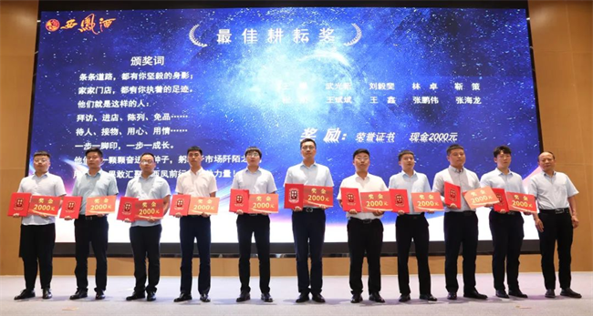 西凤股份公司市场管理部部长齐红军为最佳耕耘奖获得者颁发荣誉证书与奖金