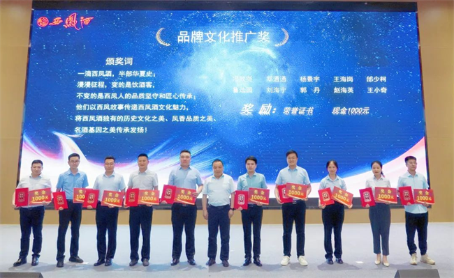 西凤股份公司品牌管理部部长姜承辉为品牌文化推广奖获得者颁发荣誉证书与奖金