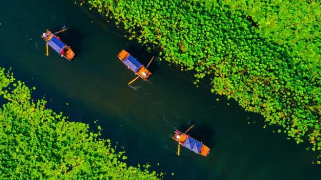 △游客乘船徜徉白洋淀。