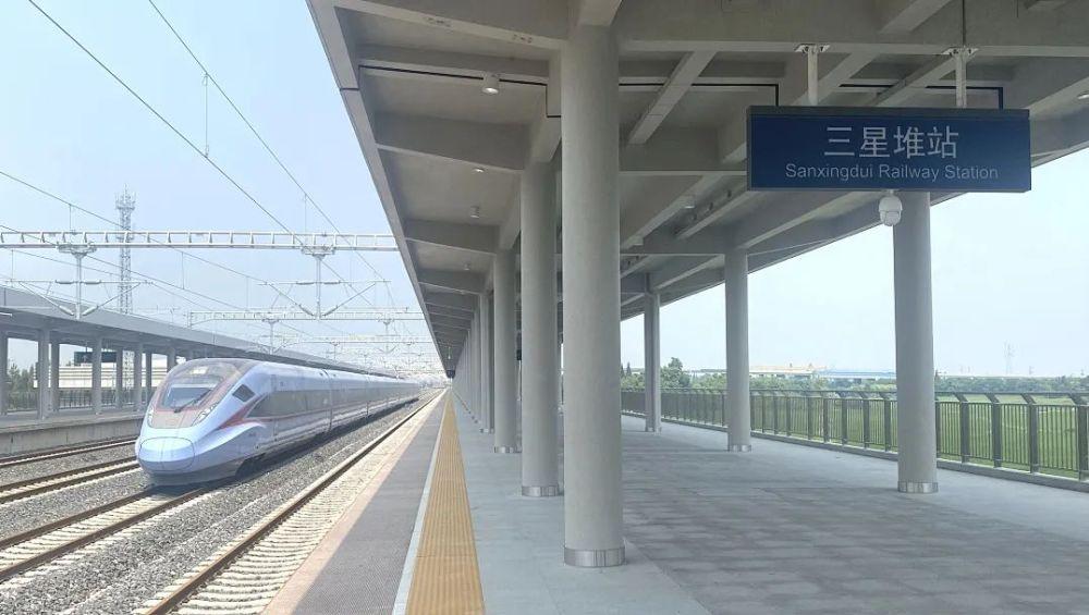 三星堆站目前进入投入运营前的验收阶段。车站将三星堆脸谱抽象为站房整体造型,注入其青铜色与基础色系碰撞,中间加上雕花的仿古元素,彰显了三星堆深远的人文背景。