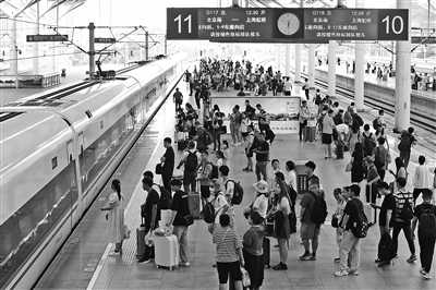 图为当日旅客在徐州东站站台候车。新华社记者 毛俊 摄