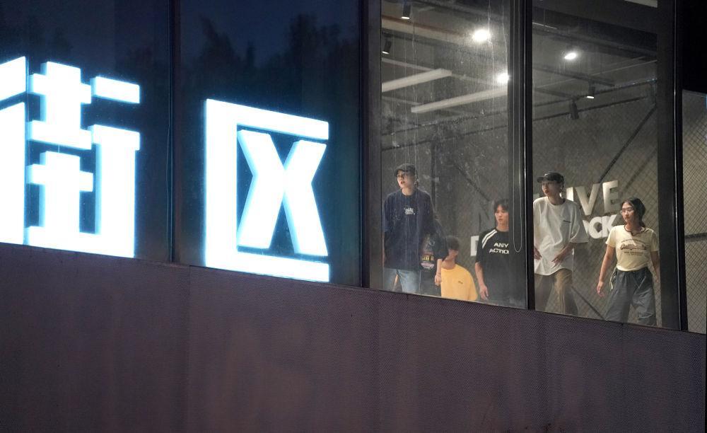 7月30日,年轻人在西安市一商业街区的舞蹈俱乐部中练习。新华社记者 邵瑞 摄