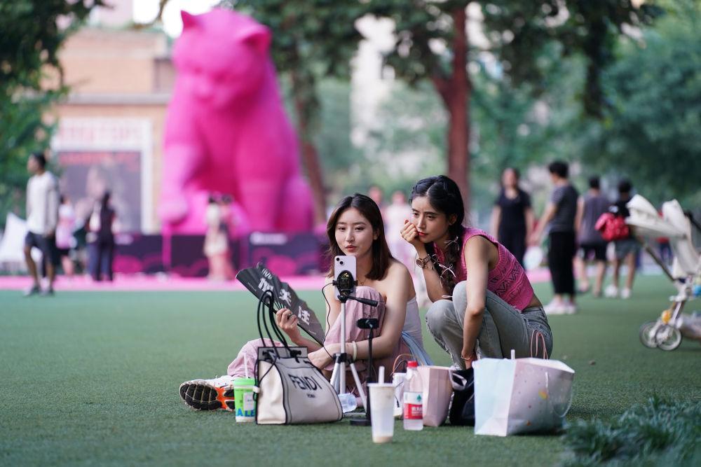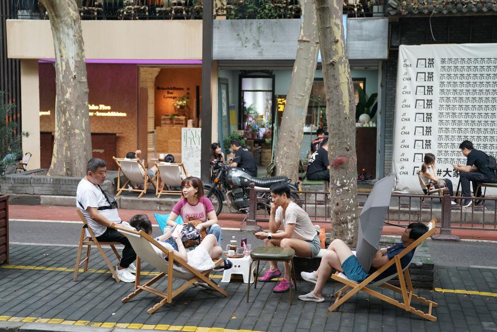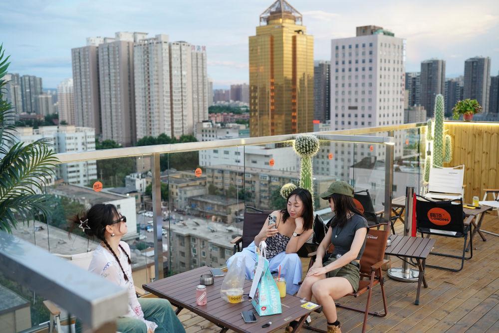 7月26日,年轻人在一栋由停车楼顶层改造而来的饮品店内消费休闲。新华社记者 邵瑞 摄