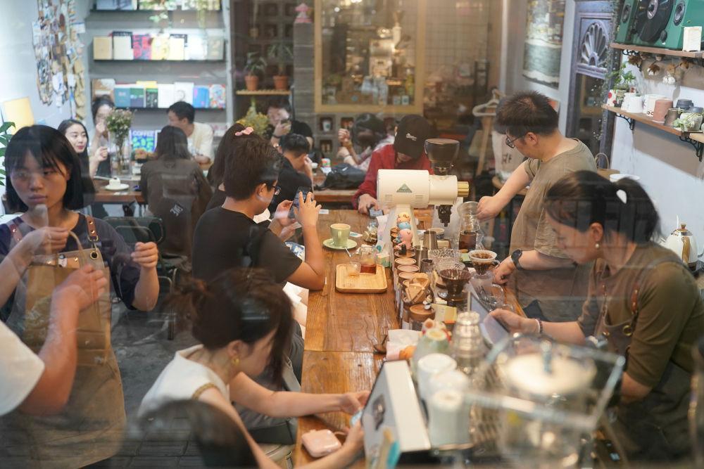 7月29日,消费者在西安市一家咖啡馆内消费。新华社记者 邵瑞 摄