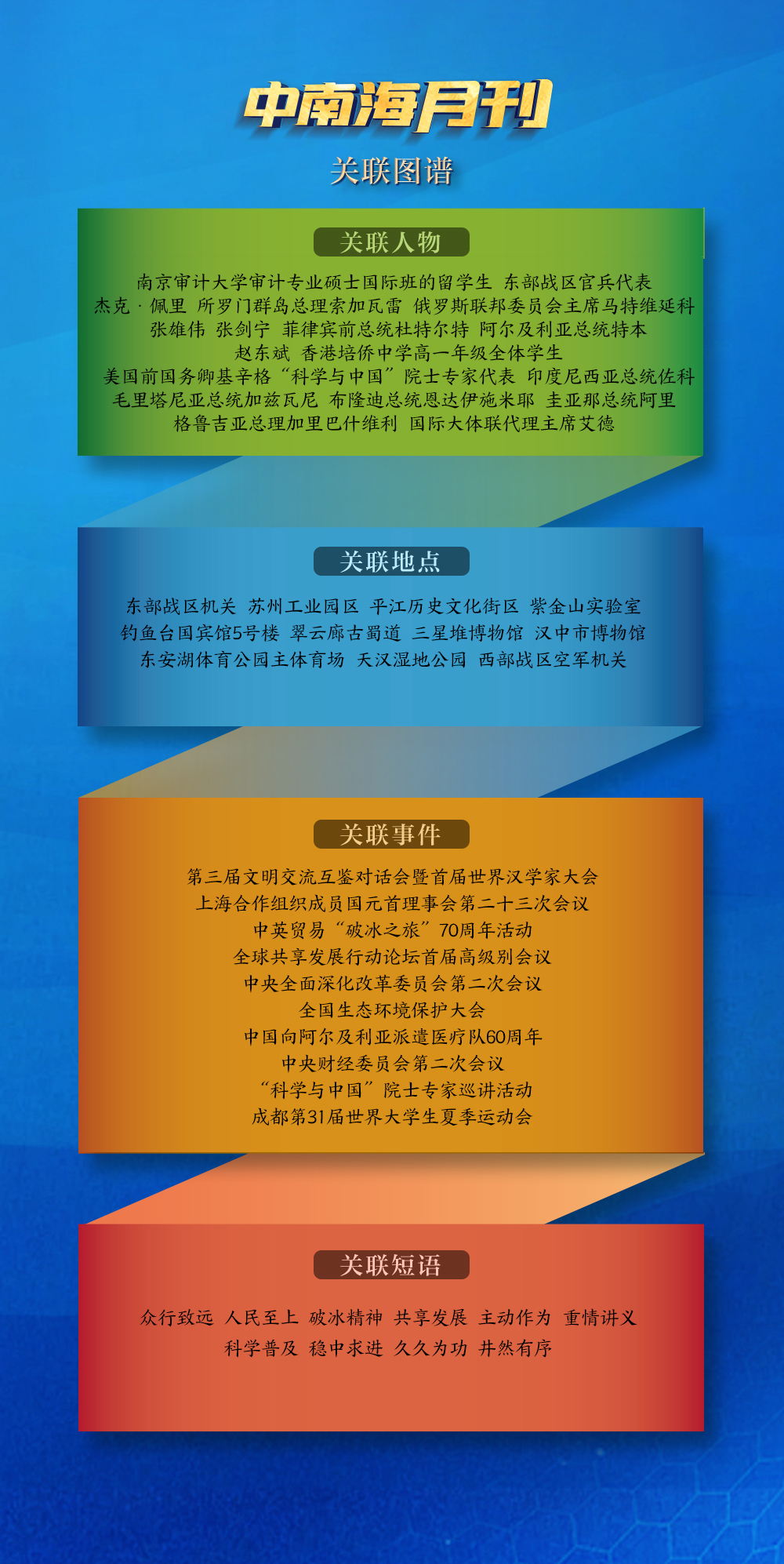 分析央视网I学习数据库生成的七月关联图谱,其中有“破冰精神”的薪火相传,有合作共赢的生生不息,有众行致远的大道如砥,有青春昂扬的奋斗如歌。