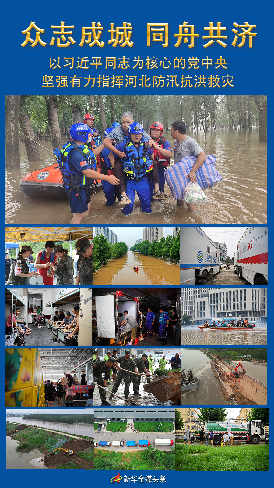 河北遭遇罕见洪涝灾害,以习近平同志为核心的党中央坚强领导、有力指挥,燕赵大地紧急动员、团结奋战,全力以赴防汛抗洪救灾。