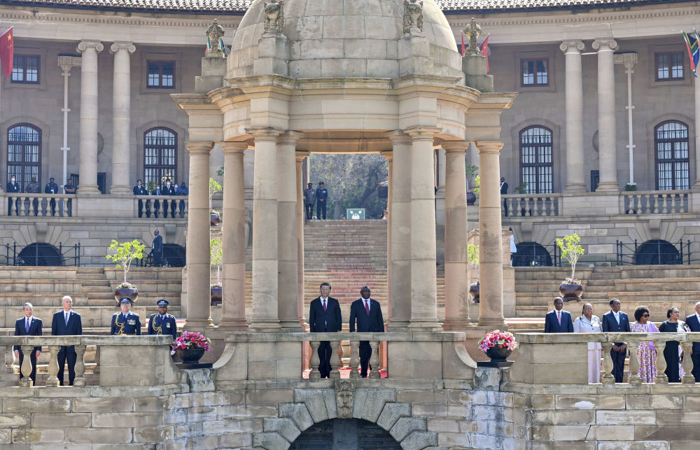 会谈前,拉马福萨在总统府广场为习近平举行欢迎仪式。