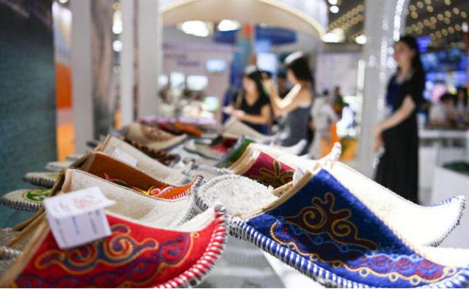 吉尔吉斯斯坦展区的特色商品。记者 邹竞一 摄