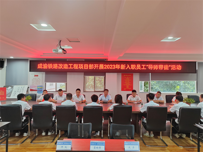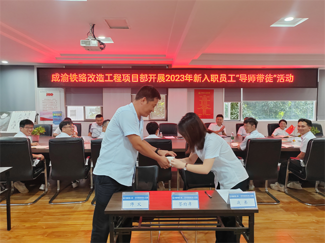 8月25日下午,中铁一局七公司成渝项目部举行导师带徒结对仪式,项目领导班子、各部室负责人及主要管理人员出席活动(重点对象为新入职大学生),支部书记王涛主持仪式。