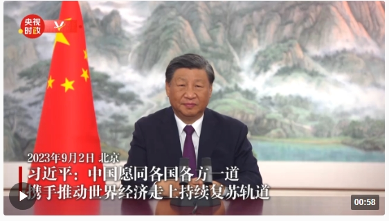 9月2日上午,国家主席习近平在2023年中国国际服务贸易交易会全球服务贸易峰会上发表视频致辞。
