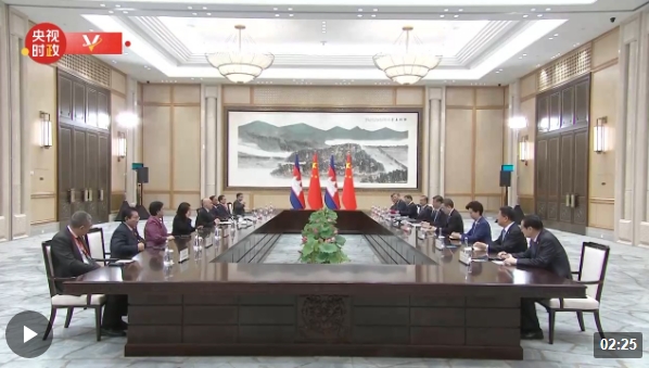 习近平指出,很高兴再次见到国王陛下。今年是中柬建交65周年和中柬友好年。年初春暖花开之际,我们在钓鱼台国宾馆亲切会面。秋高气爽之时,我们又在西子湖畔重逢,共同见证杭州亚运会开幕。两国领导人像走亲戚一样常来常往,正是中柬命运共同体的生动体现。