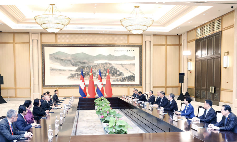 习近平强调,今年是我提出亲诚惠容理念10周年。中柬关系集中体现了这一理念以及中国坚持与邻为善、以邻为伴的周边外交方针。中国支持柬埔寨走符合本国国情的发展道路,支持柬埔寨实现稳定和发展,支持柬埔寨在国际和地区舞台发挥重要作用。双方要保持高层交往,深化互利合作,扎实推进“钻石六边”合作架构,推动“工业发展走廊”和“鱼米走廊”建设尽快取得可视成果,服务各自国家现代化事业。双方要持续推进教育、文化、青年等领域交流合作,让中柬友好更加深入人心。