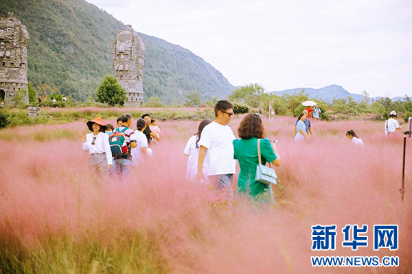 叠石花谷粉黛季拉开帷幕,微风拂过,轻柔的粉黛花穗随风摇曳,充满浪漫气息,与叠石景观相映成趣,令人流连忘返。景区在花海中设置了文案路牌、云朵气球、寻梦秋千等多组网红打卡装置,为广大游客提供花海打卡点,乐享秋日梦幻和浪漫,留下旅行的美好回忆。