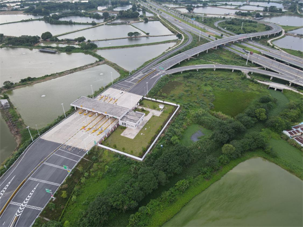 东进大道三期工程莲花南互通立交及收费站位于肇庆市鼎湖区、肇庆新区及四会市三地交界处,与既有江肇高速公路相连接,与东进大道主线相交,型式为双喇叭型。其中设匝道10条,桥梁7座,收费站房1座,车道数为4入4出。施工过程中克服了跨高速既有线施工、40m箱梁跨通行高速安全架设等多个技术难题,是继马房特大桥后,又一条拓展当地城市空间、加强粤港澳大湾区各地沟通交流的重要交通通道,为肇庆城市建设、产业布局提供强有力的支撑,对提升营商环境和产业升级优化提供有力保障。(王兴隆/文 任伟/图)