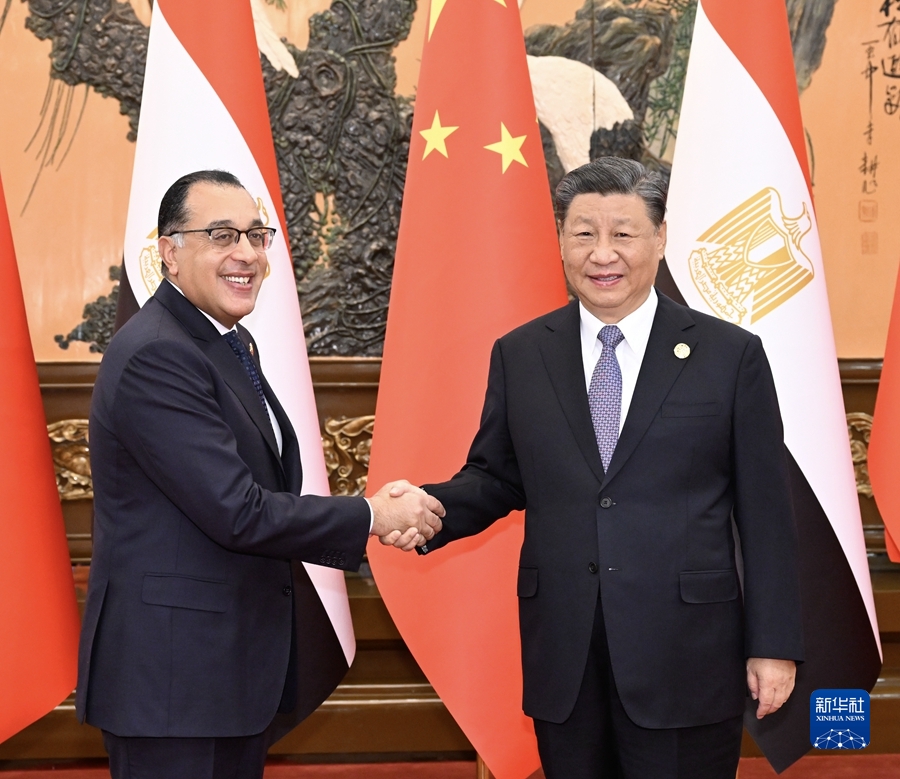 新华社北京10月19日电(记者温馨、张骁)10月19日上午,国家主席习近平在人民大会堂会见来华出席第三届“一带一路”国际合作高峰论坛的埃及总理马德布利。