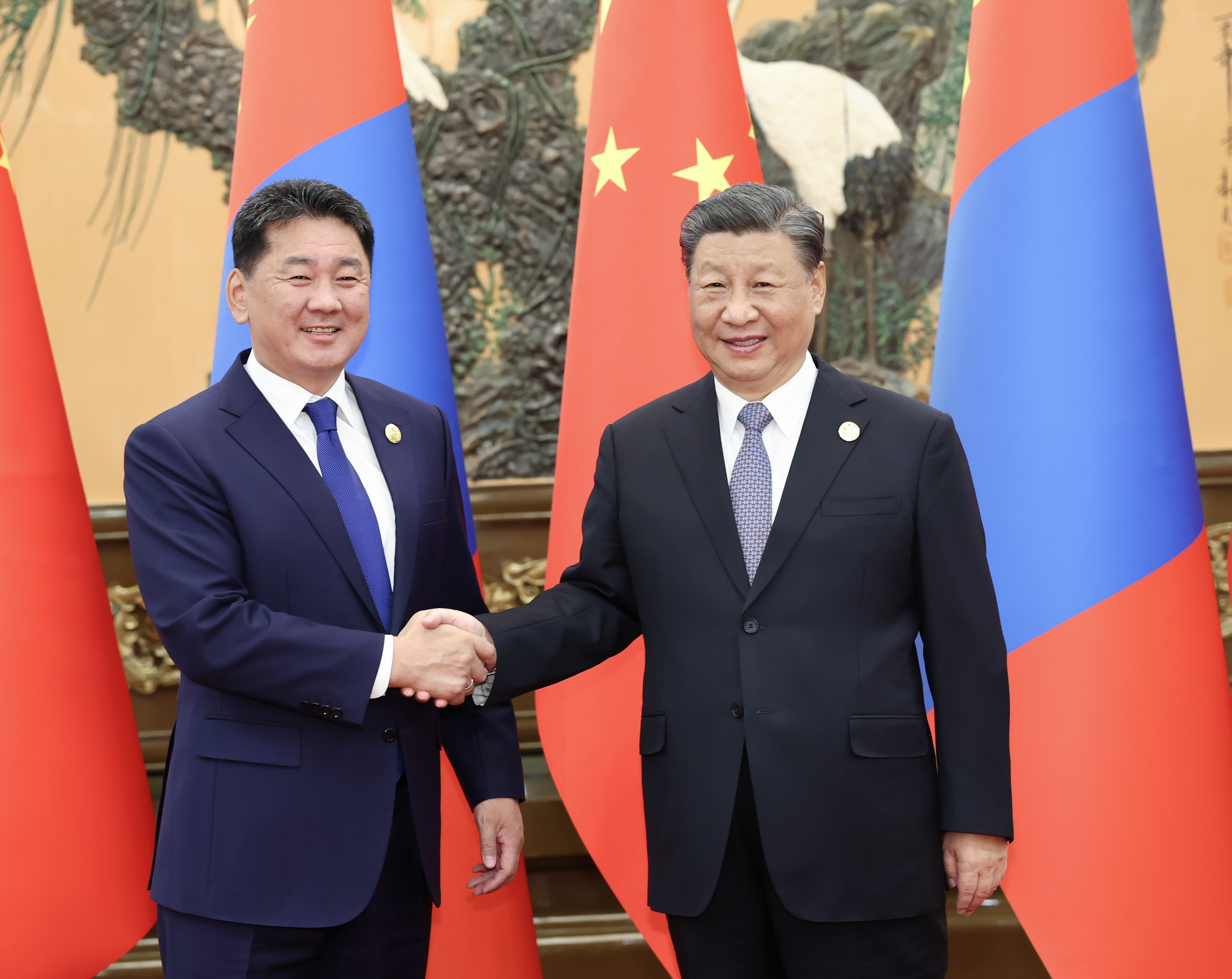 习近平指出,蒙古国是共建“一带一路”的天然伙伴,也是最早支持“一带一路”倡议的国家之一。10年来,双方深入对接发展战略,在贸易投资、互联互通、民生工程等方面合作取得可喜成果。共建“一带一路”倡议同蒙古国“草原之路”发展战略有着广阔合作空间。希望蒙方依托自身联通欧亚的地理条件,为高质量共建“一带一路”发挥更大作用。