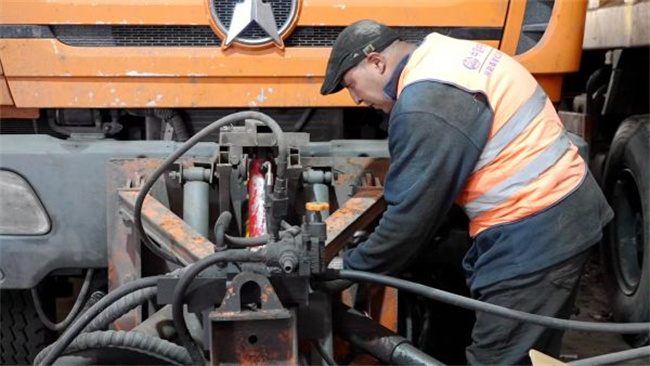 同时,车队维修班组也在加紧对所有车辆进行全面健康“大体检”。车库内,维护人员正在对设备车辆的传动轴、液压、制动、电路等进行重点保养、检修,针对老化损坏的线路和设备零部件进行维修更换。