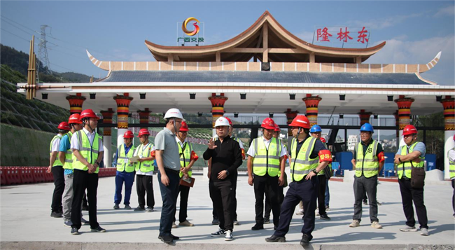 白雷一行深入踏勘了隆林东收费站、隆林东互通主线桥及平班2号隧道施工现场,听取了项目负责人对工程建设进度、安全质量管控等情况的介绍,他对项目建设取得的阶段性成果表示肯定,并对接下来的工作提出具体要求:一要紧盯目标任务,加快推进项目进度,进一步优化施工计划,倒排工期节点任务,科学合理调配力量,抢抓施工黄金期,确保伟隆高速公路一期工程如期建成。二要抓好安全生产,确保项目建设稳定,严格履行安全监管职责,落实安全施工标准化、规范化要求,加强对现场施工的监督管理,做到干成事、不出事,确保项目安全生产态势平稳;三要加强安全生产知识的培训宣贯,认真落实广西交投集团“每日六问”“六个全面”、抓好“三管三必须”“班前五分钟”“红袖章”等安全工作,保障项目安全生产。