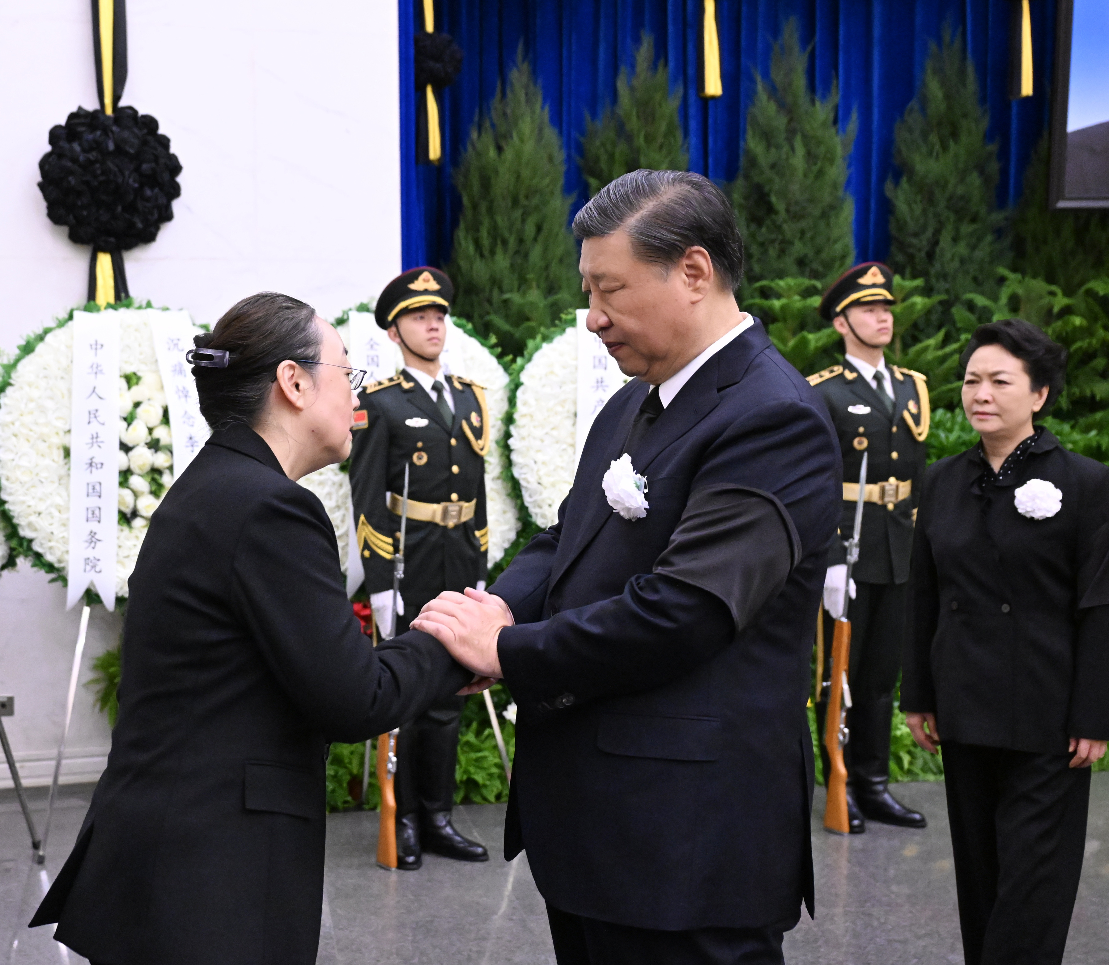 习近平李强赵乐际王沪宁蔡奇丁薛祥李希韩正等到八宝山革命公墓送别。胡锦涛送花圈表示哀悼