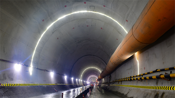 此外,两家项目部的隧道内临边防护、成品保护、安全提示等方面均达到了标准化要求。供电线路架设遵循“高压在上、低压在下,干线在上、支线在下,动力线在上、照明线在下”的原则,而且,110伏电压线路距地面不小于2米,380伏电压线路距地面不小于2.5米;高压风水管与通风管设置在同侧,高压风水管每40厘米刷红白相间的警示色,风水管均采用角铁托架固定;洞壁每隔20米设置一个高60厘米、宽40厘米照明灯箱,灯箱上印有安全、质量、企业文化、文明施工等宣传标语图片及里程标识,使隧道内管线整齐划一清爽明净。