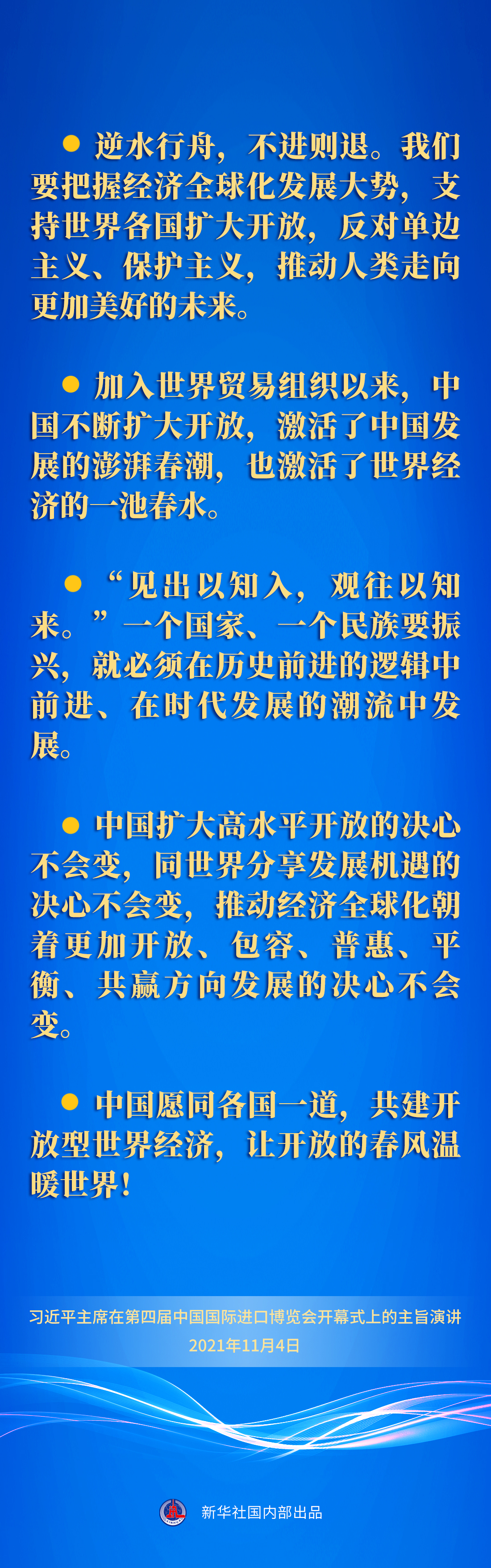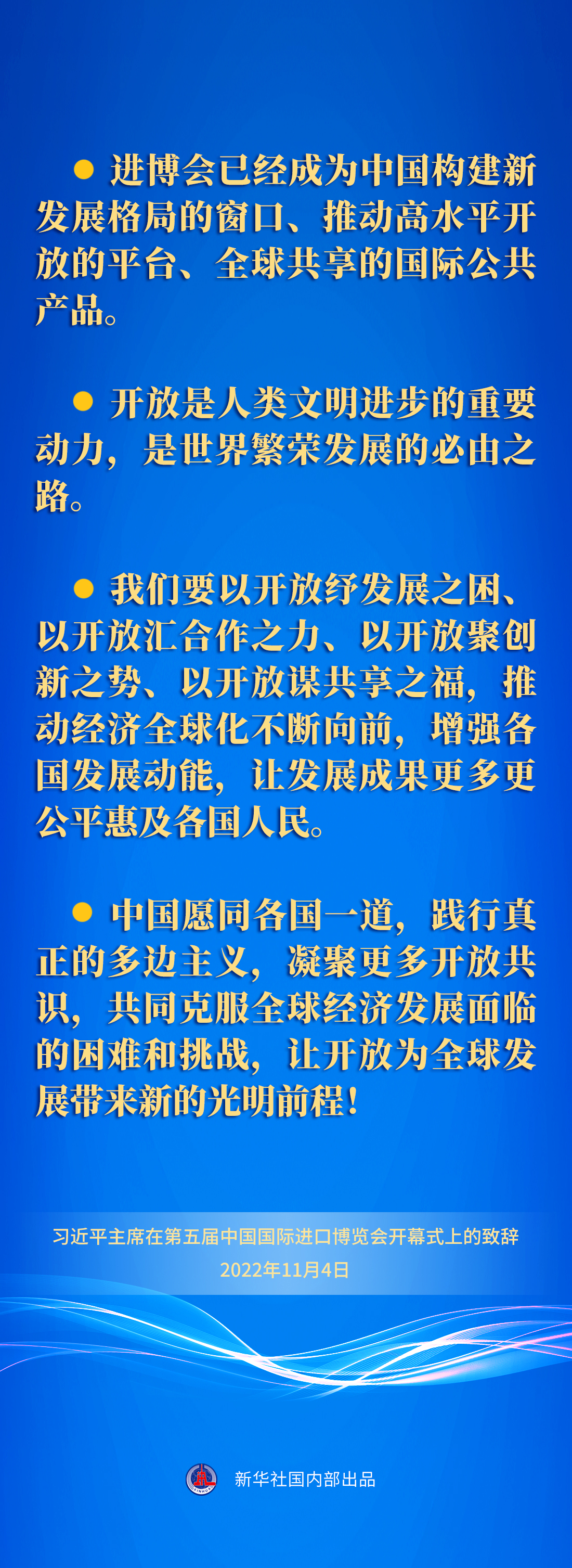 五次重要宣示,传递出中国坚定不移推动高水平开放的坚定决心,同世界共享市场机遇的真诚愿望,为构建开放型世界经济贡献中国力量的不变承诺。