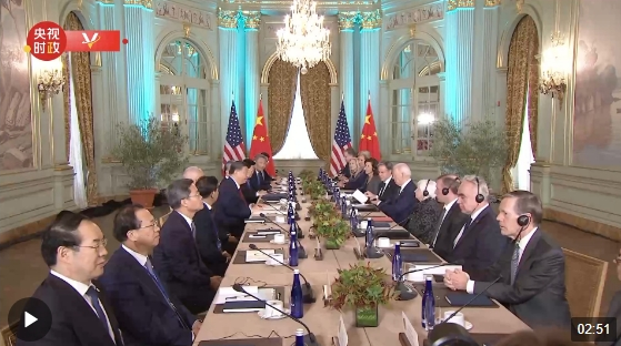 当地时间11月15日,国家主席习近平在美国旧金山斐洛里庄园同美国总统拜登举行中美元首会晤。