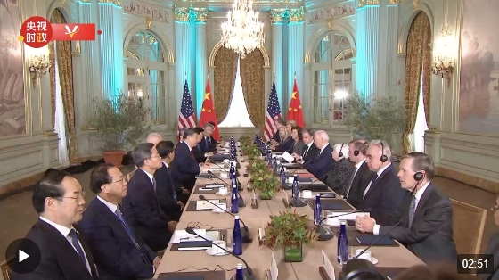 当地时间11月15日,国家主席习近平在美国旧金山斐洛里庄园同美国总统拜登举行中美元首会晤。