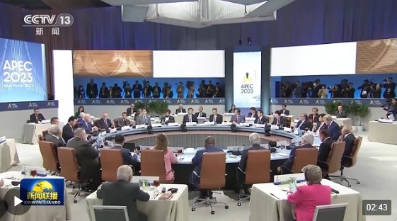 当天中午,习主席在旧金山出席了另一场多边活动——APEC领导人同东道主嘉宾非正式对话会暨工作午宴。这场会议由美国总统拜登主持,议题为“可持续、气候和公正能源转型”。