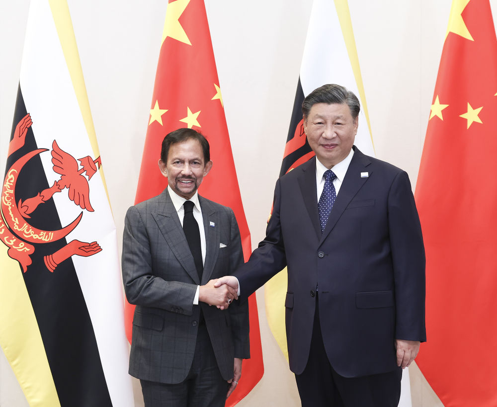 当地时间11月16日下午,国家主席习近平在旧金山会见文莱苏丹哈桑纳尔。新华社记者 姚大伟 摄