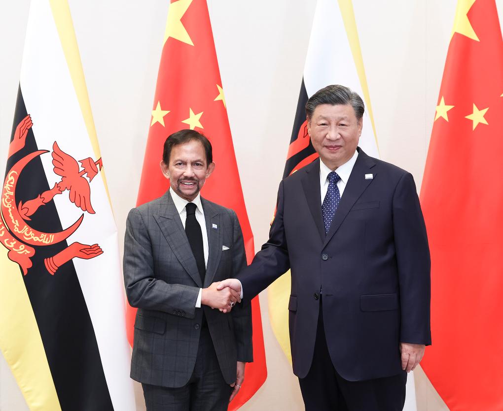 当地时间11月16日下午,国家主席习近平在旧金山会见文莱苏丹哈桑纳尔。