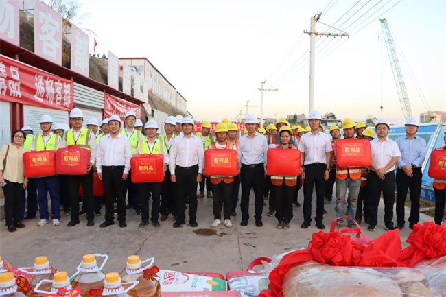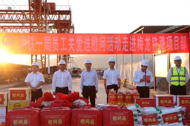 年终岁寒,元旦将至。为深入贯彻落实党的二十大和中国工会十八大精神,把党的关怀和公司工会的温暖及时送到广大职工群众的心坎上。12月11日下午,中铁一局“员工关爱送慰问”活动走进中铁一局梅龙铁路项目施工现场。中铁一局党委副书记、工会主席王新年,一公司总经理韩胜,副总经理、工会主席应晓峰等共同为项目一线参建职工送去暖心关爱。