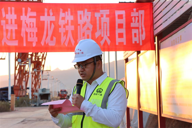 项目负责人董飞表示,梅龙铁路项目全体参建员工将积极践行“在安全上不放松一时一刻,在质量上不让步一丝一毫,在进度上不拖延一分一秒,在效益上不浪费一钱一厘,在环保上不破坏一草一木”的主人翁精神,做开路先锋,展铁军风范,全力建造精品梅龙,打造安全、绿色、创新、廉洁工程。