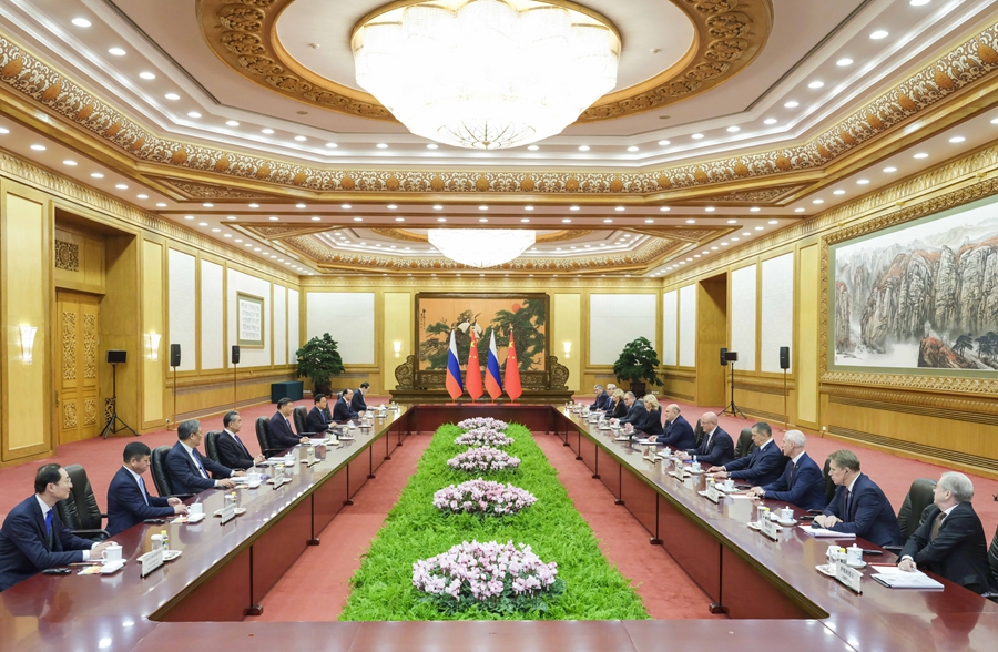 习近平强调,中国经济韧性强、潜力大、回旋余地广、长期向好的基本面没有改变。中国坚定推动高质量发展,推进高水平对外开放,将为包括俄罗斯在内的各国发展提供新机遇。双方要充分发挥政治互信、经济互补、设施互联、民心互通优势,不断丰富合作内涵,深化经贸、能源、互联互通等领域合作,共同维护产业链供应链安全稳定。双方要办好明后两年中俄文化年,多设计、多开展丰富多彩的人文交流活动,夯实两国世代友好的社会和民意基础。
