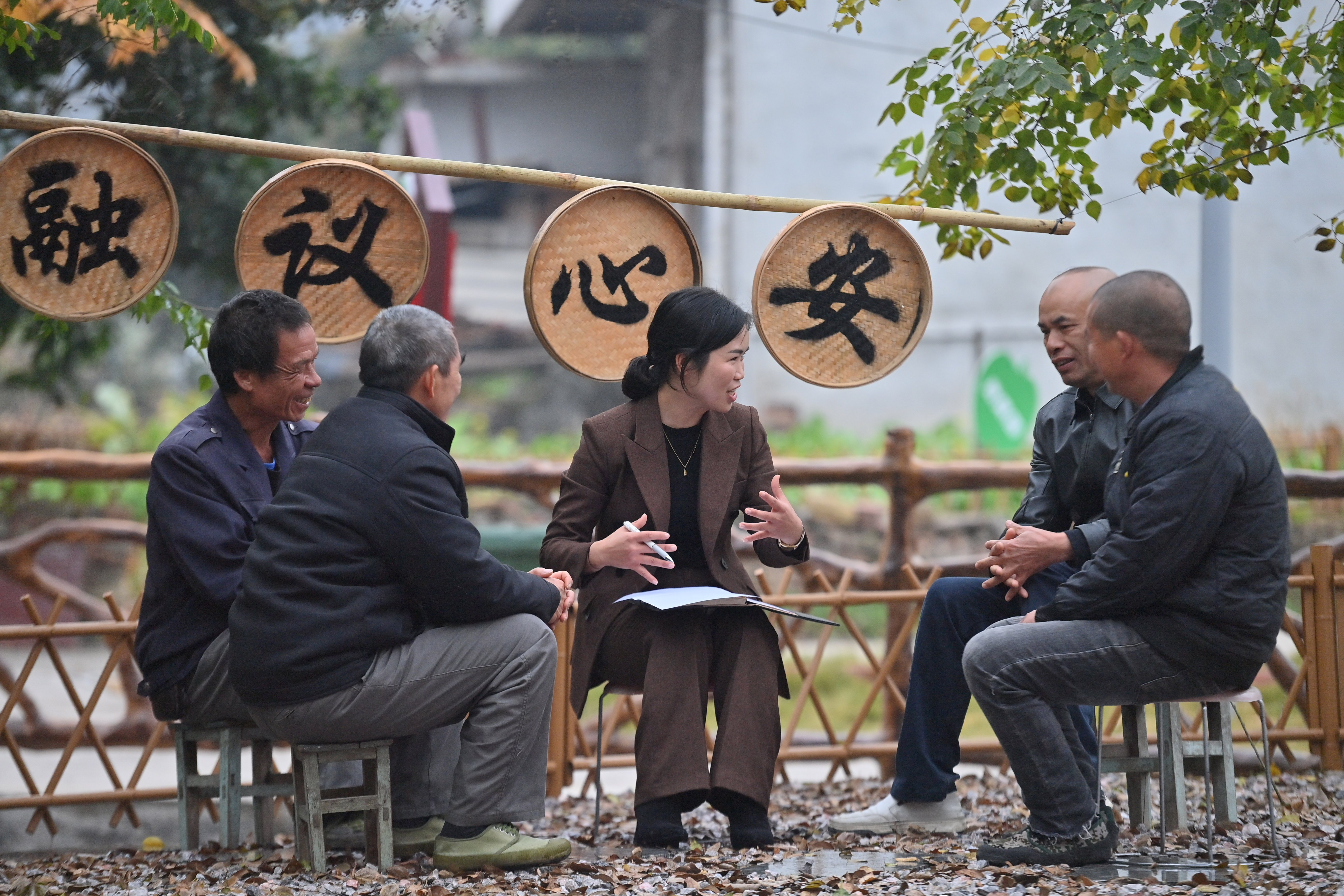 2024年1月5日,在广西融安县浮石镇六寮村议事协商主题广场,镇、村干部和村民在议事。新华社记者 黄孝邦 摄