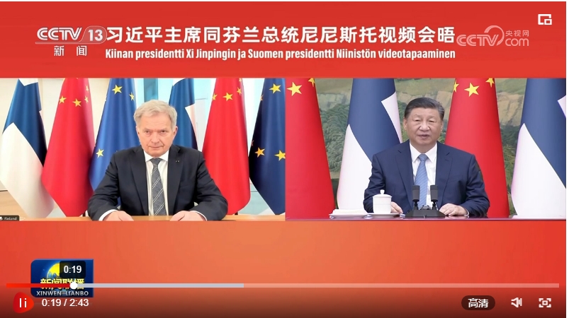 1月10日下午,国家主席习近平同芬兰总统尼尼斯托举行视频会晤。