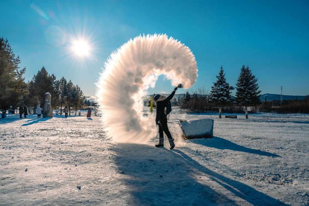 △2024年1月15日,游客在黑龙江漠河北极村感受冬日风情。