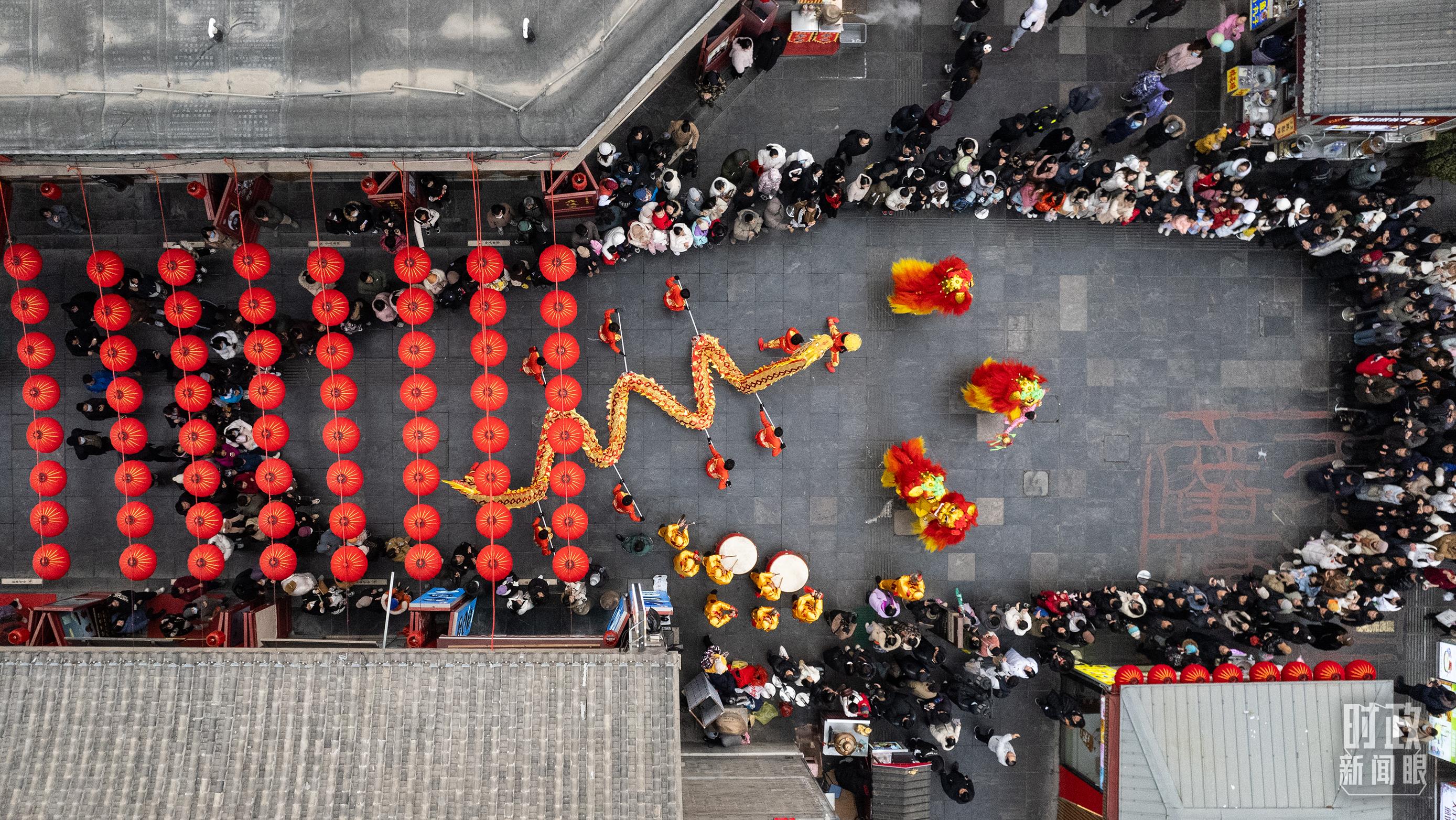 △天津古文化街上的舞龙舞狮表演,喜气腾腾。(总台国广记者李晋拍摄)
