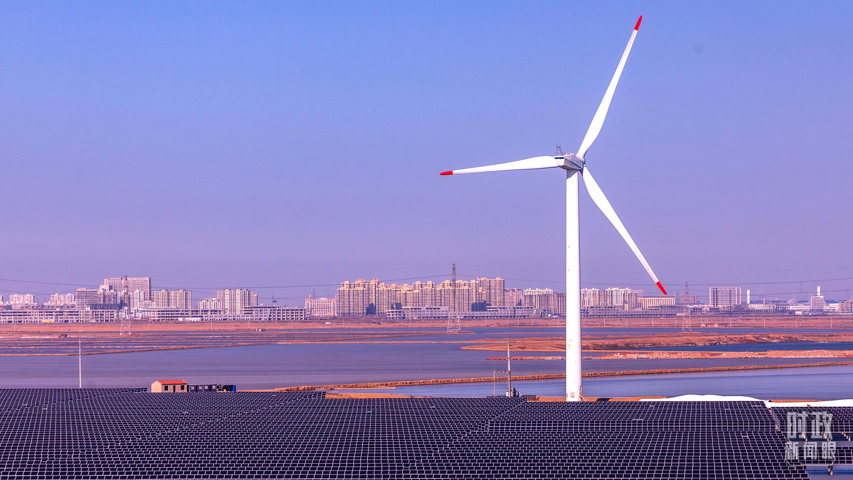 △天津市滨海新区,风电机矗立渤海湾。(图/视觉中国)