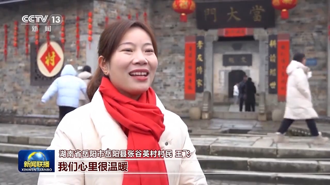 湖南省岳阳市岳阳县张谷英村村民 王飞:总书记关心我们基层群众年过得好不好,我们心里很温暖,现在游客都愿意来,感受我们村的古韵和文化。对于来年的日子,我们大家都充满信心,把日子过得更好。
