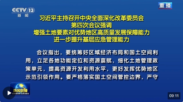 习近平主持召开中央全面深化改革委员会第四次会议强调 增强土地要素对优势地区高质量发展保障能力 进一步提升基层应急管理能力
